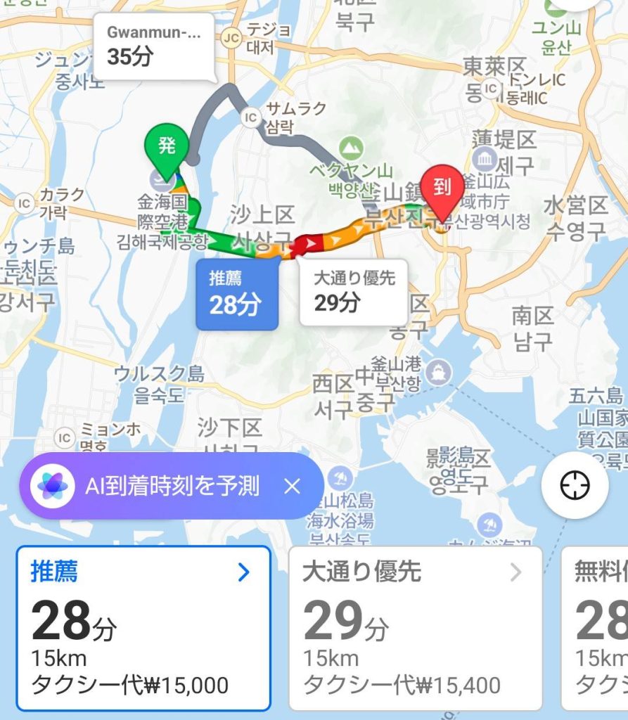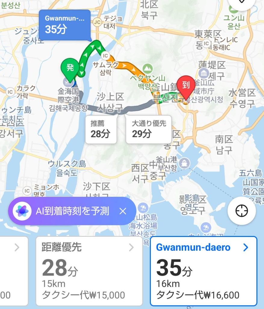 ■釜山空港から西面までのタクシールート