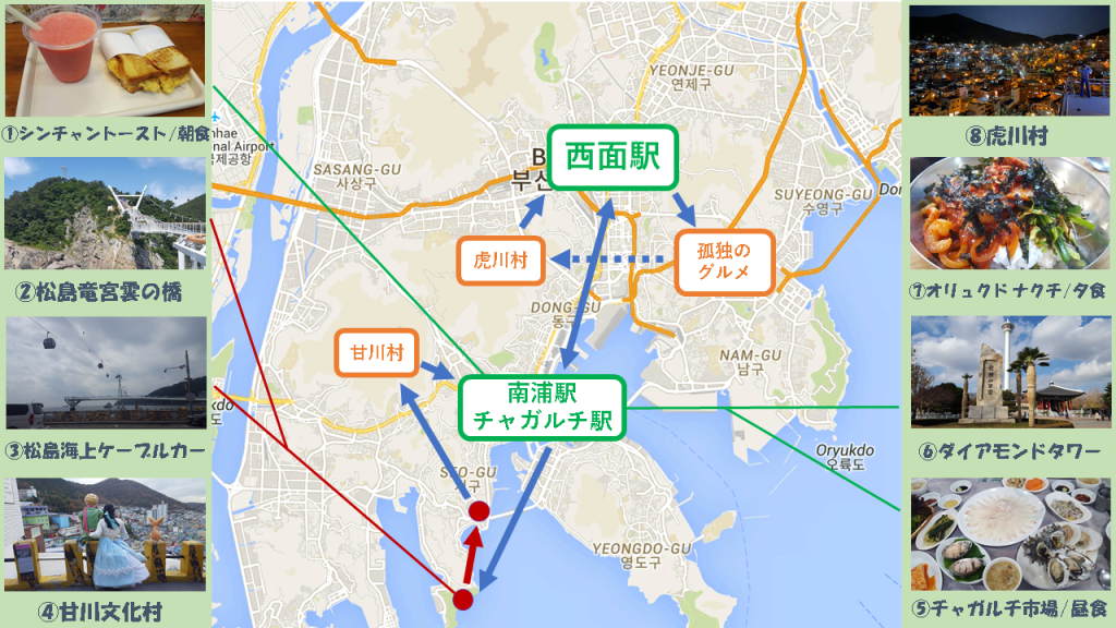 今回紹介したのは『初めての釜山観光』というテーマで考えたモデルコースです。
