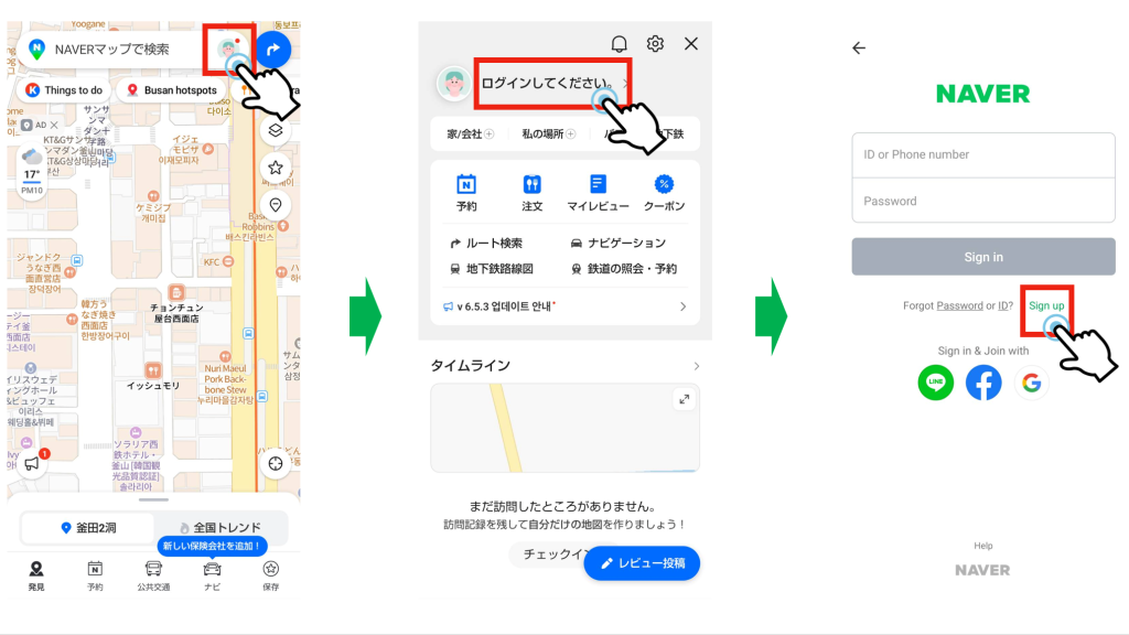 再度ログイン画面に移動しIDとパスワードを入力するとNAVERマップにログインが完了します。