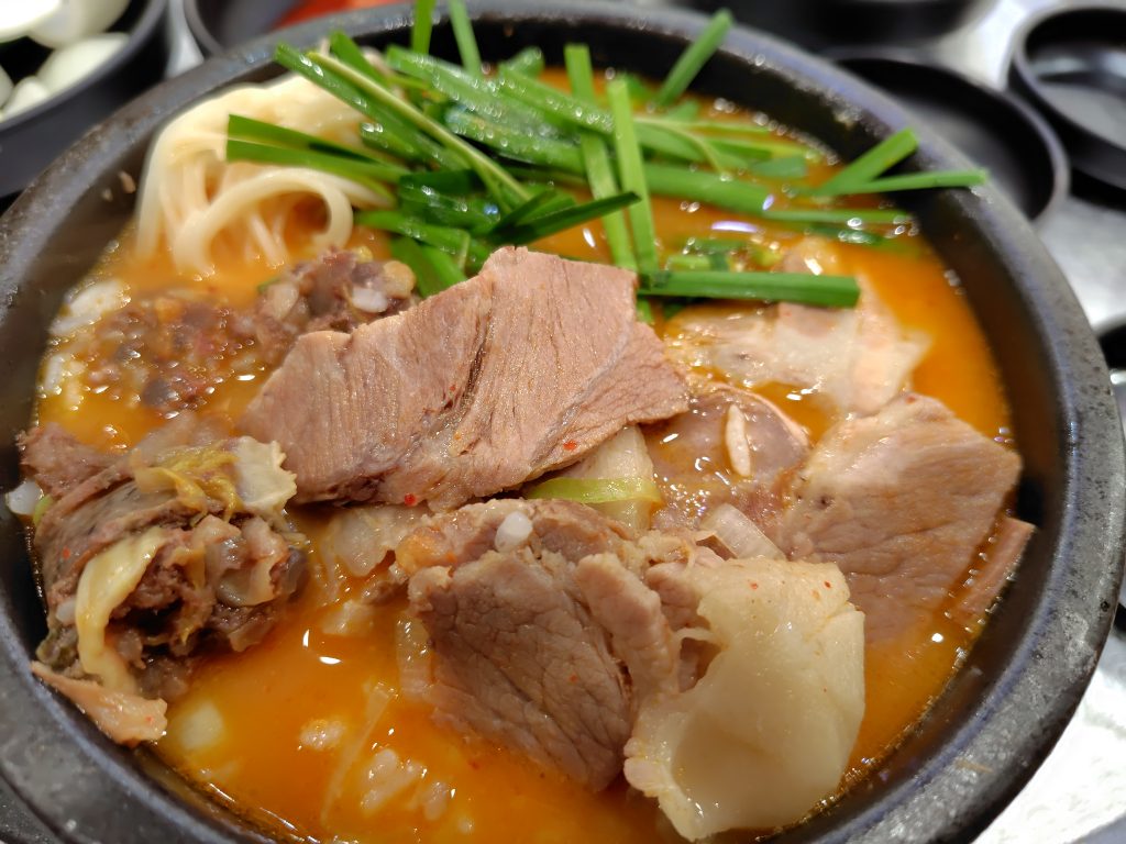 見た目は日本のとんこつラーメンに似ていますが、意外とあっさりしていてクセが少なく、韓国料理が初めての方でも食べやすいのが特徴です。