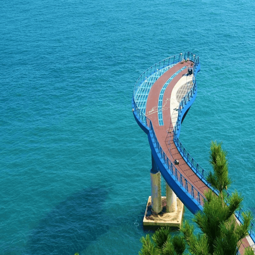 海雲台ブルーラインパークの海辺列車の駅からアクセスできるタリットル展望台は元々I字型の展望台となっていますが…